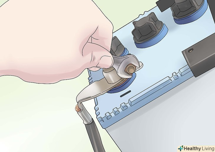 Від'єднайте клему від позитивного виведення акумулятора (зазвичай провід цієї клеми червоного кольору і позначений знаком «+»).