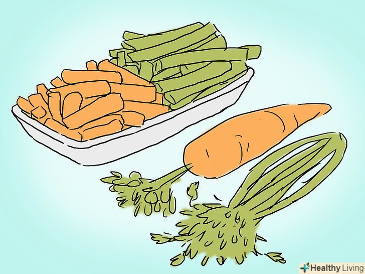 Закуски. робіть по одному легкому перекусу між сніданком і обідом, а також між обідом і вечерею. Це відмінна можливість вжити більше клітковини. Приклади здорових закусок включають в себе:- Селера і морква.