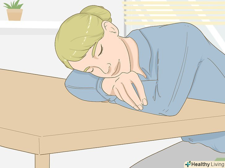 Виділяйте трохи часу вдень, щоб подрімати.Короткий (відновлювальний) сон допомагає підбадьоритися і підвищити рівень енергії. 20-30-хвилинний сон протягом дня значно підвищує концентрацію і покращує продуктивність, при цьому він не залишає відчуття сонливості і не заважає нічному сну.[15] знайти місце для сну на робочому місці може бути непросто, проте можна, наприклад, швидше обідати і спати в машині (якщо ви добираєтеся на ній на роботу).- Обов'язково повідомте начальнику і колегам про свій намір отримати відновлювальний сон, щоб вони не подумали, що ви просто-напросто ліниві.