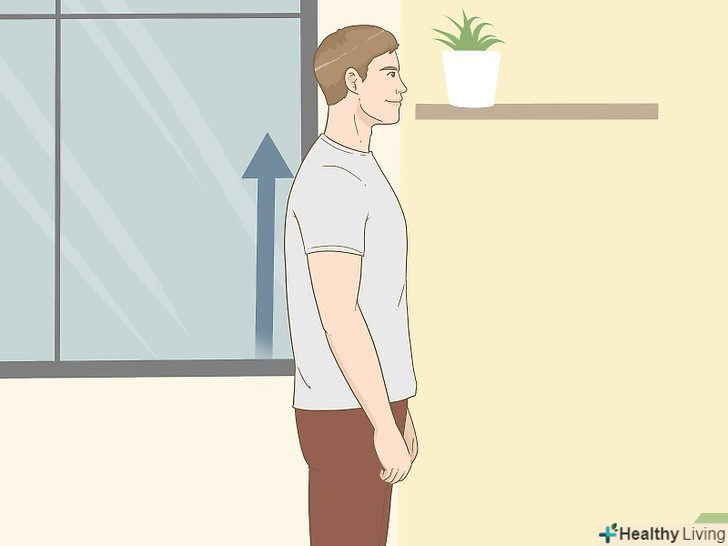 Распрямитесь.час від часу перевіряйте поставу — спина повинна бути рівною, а плечі розправлені. Фізичні рухи і психічний стан взаємопов'язані, тому якщо прийняти позу, яка виражає енергію, це пошле сигнал бадьорості в мозок.- Слідкуйте, щоб спина була прямою, а плечі трохи відведені назад.