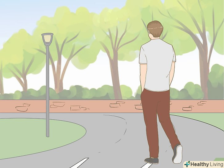 Рушайте на прогулянку.Ходьба теж підвищує рівень енергії.[5] якщо ви відчуваєте занепад сил, спробуйте вийти на вулицю і прогулятися по кварталу або просто навколо будинку протягом 10-15 хвилин.- Слухайте запальну музику в навушниках під час ходьби, щоб посилити підбадьорливий ефект.