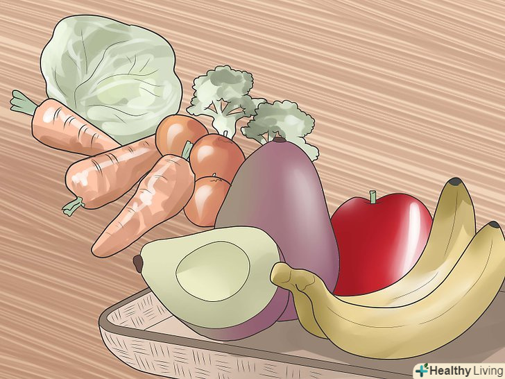 Їжте велику кількість фруктів і овочів. вам варто їсти щонайменше 9 порцій свіжих фруктів і овочів щодня. Фрукти і овочі містять в собі велику кількість поживних речовин, які необхідні вашому організму. Дієта, багата на фрукти і овочі, допоможе контролювати кров'яний тиск і скоротить ймовірність появи серцевих захворювань. Важкопереварімие харчові волокна присутні в багатьох фруктах і овочах запобігають запор, регулярно змушуючи рухатися кишечник. Ось інші переваги: [5] :- Зменшення шансу захворіти на рак: деякі фрукти і овочі захищають нас від певної форми раку. Такі овочі як латук, зелені листові овочі, брокколі, капуста, цибуля і часник захистять вас від раку ротової порожнини, стравоходу, гортані і шлунка. Помідори можуть запобігти чоловіків від раку передміхурової залози. Фрукти і овочі з яскравим кольором містять в собі Лікопін – каротиноїд, який допомагає запобігти захворюванню на рак горла, легенів і ротової порожнини.