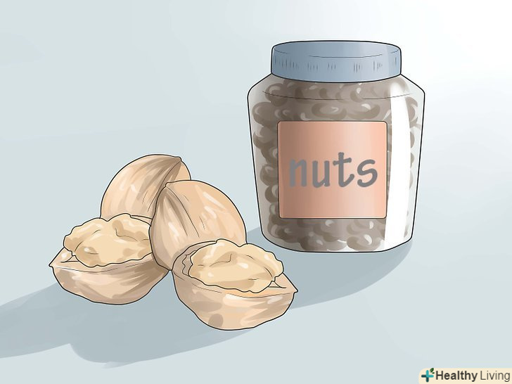 Їжте більше горіхів і насіння. ці дві групи харчових продуктів повинні бути частиною кожного вашого блюда. Горіхи і насіння мають в достатку здорового жиру з високим вмістом ненасичених жирних кислот, який робить їх кращим джерелом здорового жиру, в той час як м'ясо та інші тваринні продукти містять в собі насичений жир, від якого складно позбутися. Жири з високим вмістом ненасичених жирних кислот, який містять в собі горіхи і насіння, також допоможуть стежити за вашою фігурою. Також вони є відмінним джерелом клітковини. До горіхів і насіння відносяться: [6] :- волоський горіх : містить в собі найбільшу кількість антиоксидантів, ніж у всіх інших горіхів. Ці антиоксиданти допомагають організму боротися з раком і серцевими захворюваннями. Також він містить в собі групу омега-3-поліненасичених жирних кислот, які підвищують працездатність вашого мозку і зменшують слабкість в тілі.