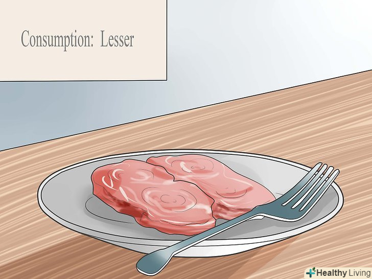 Скоротіть споживання червоного м'яса. якщо ви не можете повністю відмовитися від вживання червоного м'яса, вам варто зменшити кількість. Червоне м'ясо містить в собі велику концентрацію заліза, а накопичення заліза є однією з можливих причин хвороби Альцгеймера. Також вживання червоного м'яса є причиною розвитку серцевих захворювань і 2 типу діабету. [9]