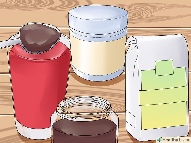 Спробуйте ароматизовані протеїнові порошки. [18] Проблема може полягати в тому, що ви просто не переносите присмак неароматизованого протеїнового порошку. На щастя, у продажу є безліч марок порошку з присмаком шоколаду, ванілі, кориці і так далі. Можна навіть знайти порошок зі смаком печива або вершків!- Якщо ароматизовані порошки все одно неприємні вам, спробуйте змішати кілька різних ароматів. Наприклад, насипте половину мірної ложки порошку з ароматом кориці і додайте порошок зі смаком шоколаду – можливо, так ви знайдете оптимальний варіант.