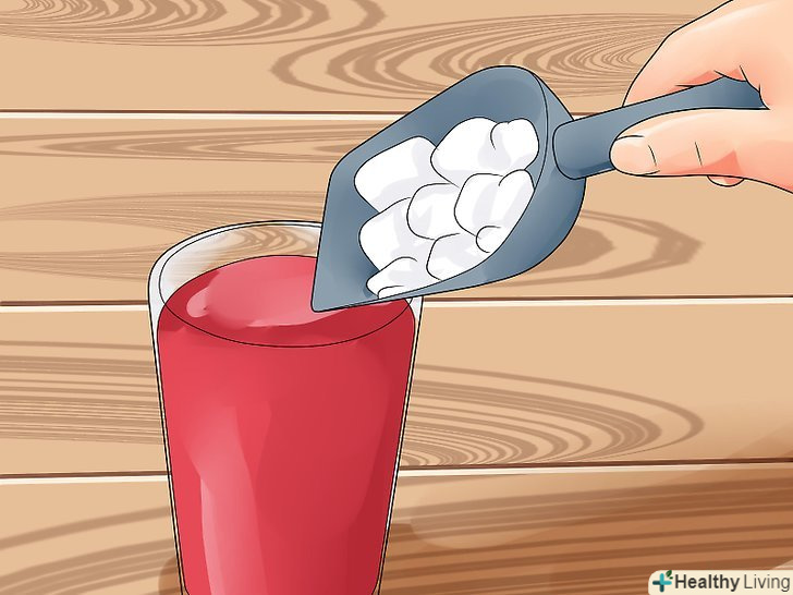 Виберіть відповідну рідину. деякі вважають за краще прозорі легкі напої, оскільки їх можна швидко випити. Іншим подобаються коктейлі густіше, так як вони ефективніше маскують смак порошку. Можливо, Вам варто поекспериментувати з коктейлями різної консистенції, щоб визначити, які найбільш підходять саме вам. Найчастіше одну мірну ложку порошку розчиняють в склянці (250 грамів) рідини, але ви можете додавати меншу або більшу кількість порошку, отримуючи відповідно менш або більш густий розчин. Ви можете також спробувати розводити порошок в різних рідинах:- Вода хороша для скидання зайвої ваги, оскільки вона не містить додаткові калорії. Однак вода не дозволяє приховати смак порошку. Тому замість простої води спробуйте різні ягідні чаї, що сприяють спалюванню енергії і втраті ваги. Приховати смак порошку і одночасно скинути вагу допоможе, наприклад, холодний чай з малини або ягід асаї. [2]