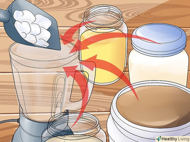 Спробуйте деякі популярні коктейлі. [10] багато хто любить експериментувати з різними інгредієнтами, підбираючи відповідні їм комбінації. Однак якщо ви хочете приготувати протеїновий коктейль прямо зараз, то можете спробувати один з наступних класичних варіантів:- Коктейль з арахісового масла і меду: змішайте одну мірну ложку протеїнового порошку, склянку льоду, склянку молока або його замінника, 1/8 склянки арахісового масла і 1/8 склянки меду. При бажанні можна також додати половину стиглого банана і / або квадратик чорного шоколаду.