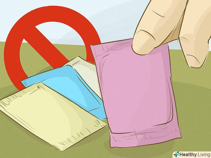 Відмовтеся від штучних підсолоджувачів. штучні підсолоджувачі-це невдалий вибір, якщо ви хочете уникати солодкого і знизити свою тягу до таких продуктів. Було проведено комплексне дослідження впливу штучних підсолоджувачів на організм і підвищеного ризику розвитку раку. Штучні підсолоджувачі включають сахарин, аспартам, ацесульфам калію, сукралозу, цикламат і неотам. [20]- Знайдіть більш здоровий підсолоджувач, наприклад, екстракт стевії. Він не містить калорій і виробляється природним шляхом, а це означає, що він походить від рослини стевії, а не з хімічних речовин, таких як штучні підсолоджувачі. Стевія також показала ефективність при лікуванні високого кров'яного тиску і дискомфорту в кишечнику. Однак стевія, як відомо, взаємодіє з деякими ліками, наприклад, протизапальними і протигрибковими препаратами. Проконсультуйтеся з лікарем, чи буде стевія для вас безпечною, якщо ви приймаєте будь-якої з цих препаратів. [21]