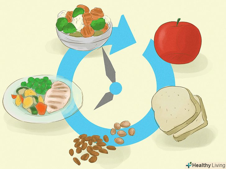 Їжте невеликими порціями. Коли тяга до солодкого викликана низьким рівнем енергії протягом дня, ще однією корисною стратегією буде поділ прийомів їжі на невеликі порції протягом усього дня. Це допоможе вам уникнути зниження енергії, яке приходить в ті періоди, коли ви не їсте. [14]- Деякі дослідження показують, що споживання п'яти-шести невеликих прийомів їжі замість трьох великих прийомів їжі допомагає підтримувати відчуття ситості протягом усього дня. Спробуйте підвищити здорову кількість калорій, яке ви споживаєте в день, збільшуючи кількість прийомів їжі. Але розбивайте кількість їжі на п'ять-шість прийомів, а не споживайте п'ять-шість нормальних порцій їжі в день. Це підвищить кількість споживаних вами калорій за рахунок великої кількості їжі. [15]