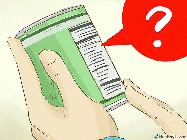 Читайте етикетки. цукор ховається в більшості оброблених харчових продуктів. Якщо ви не можете прочитати інгредієнти або їх занадто багато, ймовірно, в цьому продукті багато цукру. Інші поширені назви видів цукру включають: сироп агави, коричневий цукор, кукурудзяний підсолоджувач, кукурудзяний сироп, декстроза, фруктоза, глюкоза, лактоза, мальтоза, сахароза, кукурудзяний сироп з високим вмістом фруктози, концентрат фруктового соку, мед, інвертний цукор, солодовий цукор, меляса, цукор і сироп. [16]