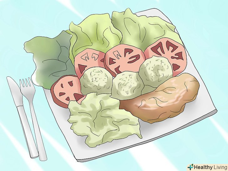 Поступово переходите на раціон, в якому переважають продукти з низьким глікемічним індексом. не варто відразу позбавлятися від усіх продуктів з високим індексом і харчуватися тільки вареної курячої грудкою. Краще почніть поступово вводити в свій раціон більше продуктів з низьким глікемічним індексом.- Кожні один-два дні замінюйте один або два продукти з високим індексом на продукти з низьким індексом. Ваш організм поступово звикає до певного типу харчування. Якщо ви різко змінюєте свої харчові звички, у вас може з'явитися непереборне бажання з'їсти саме ту їжу, яку Ви прибрали з раціону. Це дуже часто відбувається саме щодо солодких, багатих вуглеводами продуктів. Поступовий перехід до нового типу харчування дозволяє "обдурити" організм і не дати розвинутися харчової залежності від шкідливих продуктів. Це може допомогти Вам стриматися і підтримувати здорову дієту, що набагато краще, ніж здатися і піти на поводу у своїх шкідливих харчових звичок.