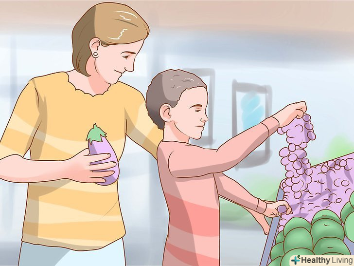 Залучайте дітей до приготування здорової їжі. дослідники прийшли до висновку-участь дітей у виборі продуктів і приготуванні їжі сприяє розвитку більш здорових звичок в харчуванні. [6]- Дозвольте дитині сходити в магазин і вибрати такі овочі або фрукти, які вони ще не пробували, навіть якщо вам вони не до вподоби. Станьте хорошим прикладом і не заважайте дитині пробувати нові продукти.