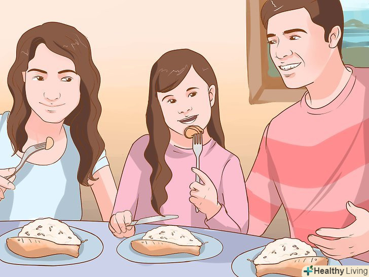 Приймайте їжу всією сім'єю. багато сімей не вечеряють разом. Важко пов'язати різний графік роботи, тренування і репетиції, а також домашні завдання. При цьому дослідники заявляють, що спільні прийоми їжі позитивно позначаються на харчових звичках дітей. [4]- Намагайтеся вечеряти всією сім'єю якомога частіше. За вечерею можна обговорити події минулого дня і показати дітям правильний приклад в питаннях харчування.