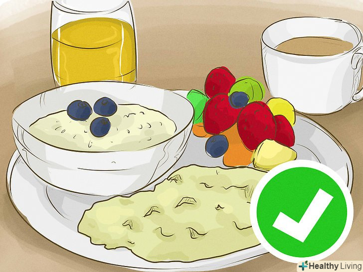 Не пропускайте сніданок і переконайтеся, щоб прийом їжі був корисним і помірним.Хороший сніданок, що складається з тосту, цільнозернових пластівців або вівсяної каші, зарядить вас бадьорістю на весь день. Ці продукти повільно вивільняють енергію, отже, ви з меншою ймовірністю відчуєте тягу до цукру. Зі сніданком також слід отримувати достатньо жирів і білків з тварин білкових продуктів, таких як яйця, бекон, сосиски тощо.- Не їжте солодкі пластівці — краще пошукайте цільнозернові пластівці без цукру. Навчіться готувати різні види каші, починаючи від каші з амарантом і закінчуючи ячмінною кашею. Покладіть зверху кілька ягід чорниці-вийде дуже смачно!