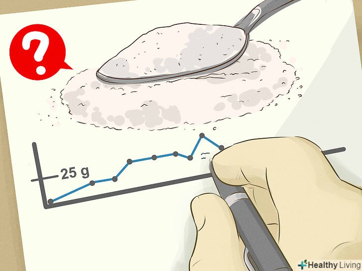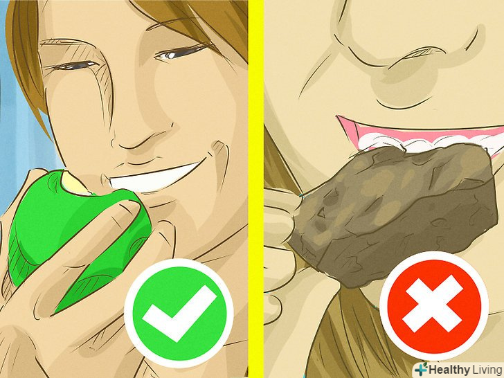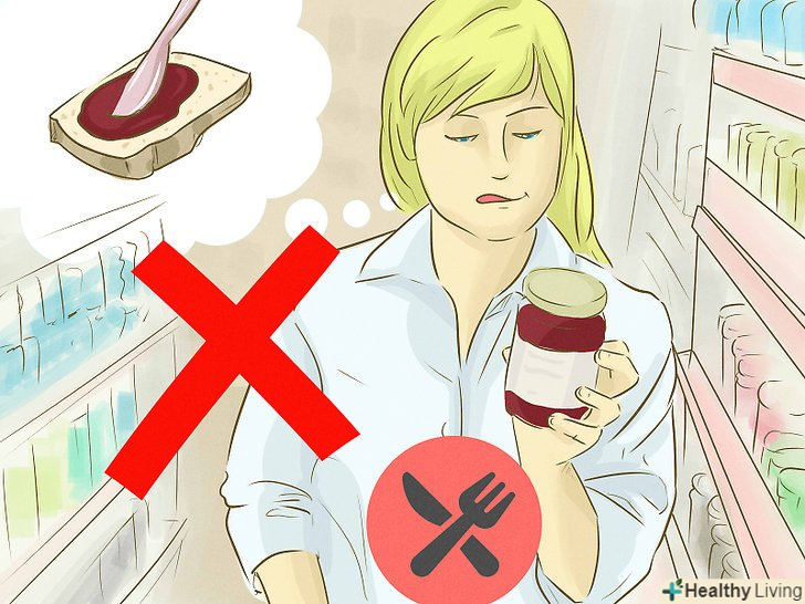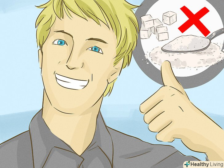 Обмежте споживання цукру.ви, напевно, думаєте про цукор лише в ті моменти, коли ви додаєте його до свого блюда або кави, але, швидше за все, ви їсте його набагато більше, навіть не замислюючись про це. Візьміть на себе зобов'язання усвідомлено підраховувати, скільки грам цукру ви вживаєте щодня, і скоротіть цю кількість до здорової межі. Всесвітня організація охорони здоров'я рекомендує з'їдати не більше 25 грам цукру в день (це менше, ніж міститься в одному солодкому безалкогольному напої). [3]- Рівномірно розподіляйте споживання протягом дня, віддаючи перевагу їжі з помірною кількістю цукру. Це краще, ніж з'їсти одну солодкість і купу продуктів без цукру.