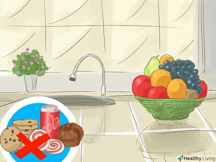 Очистіть будинок від солодких продуктів.не ставте спокусу на своєму шляху! Зберігання на кухні таких солодких частувань, як печиво, лимонад або білий хліб, лише надасть вам можливість додати зайвий цукор в свій раціон. Печенька тут, ковток газованої води там-і ви вже перевищили свою денну норму. Якщо ви прийняли рішення скоротити кількість цукру в своєму раціоні, викиньте або віддайте всю їжу, в маркуваннях харчової цінності якої занадто багато цукру для вашого нового способу життя.- Це складно зробити, якщо у вас є сусіди по кімнаті/квартирі або ви живете з членами сім'ї, які не поділяють вашого відмови від цукру. Обговоріть з домочадцями, чи є у них бажання або готовність змінити свої харчові звички заради власного здоров'я.