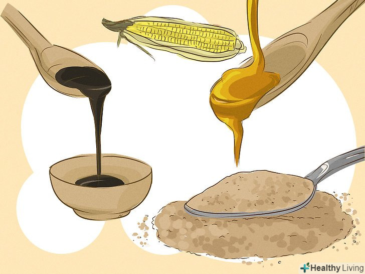 Будьте напоготові і навчитеся розпізнавати альтернативні назви цукру.[6] на маркуванні харчової цінності перераховується список інгредієнтів, де найчастіше цукор вказаний під іншими назвами. Вивчіть їх, щоб уникати продуктів з високим вмістом цукру. Інгредієнти, що закінчуються на "- оза", наприклад глюкоза, сахароза, фруктоза, лактоза, декстроза або мальтоза, — все це види цукру. Інші альтернативні назви включають в себе:- Кукурудзяний сироп з високим вмістом фруктози;