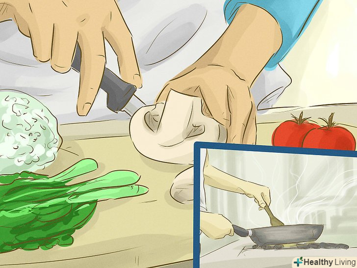Самі готуйте собі їжу. коли ви їсте поза домом, у вас є лише обмежене уявлення про те, що входить у ваше блюдо. Коли ви готуєте самі, у вас є повний контроль над тим, що в підсумку потрапить в ваш організм. Замість напівфабрикатів готуйте страви з натуральних продуктів, таких як овочі, фрукти, м'ясо і крупи.- Якщо ви їсте поза домом, не соромтеся робити спеціальні запити. Можна попросити, щоб м'ясо приготували на грилі, а не смажили, або щоб овочі зробили на пару, а не гасили в маслі.