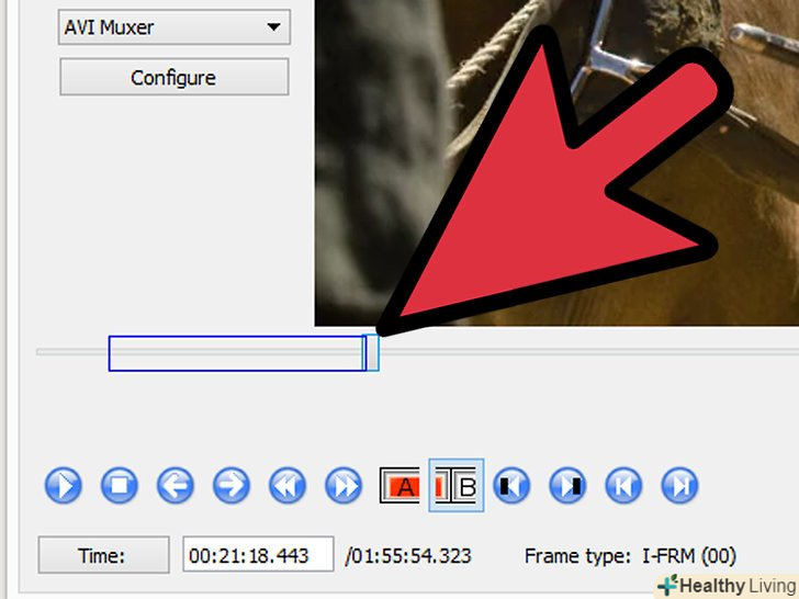 Встановіть початкову точку.використовуйте навігаційну панель у нижній частині відео, щоб знайти початок уривка, який ви хочете видалити. Натисніть або кнопку "А « В меню відтворення, або клавішу" [ " , щоб встановити вихідну точку.