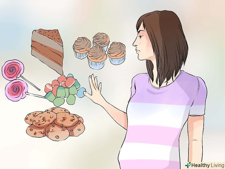 Складіть план подолання залежності.протягом декількох перших тижнів ви можете мріяти про тістечка, цукерки та морозиво, однак пам'ятайте, що це пройде. Спробуйте впоратися з цим тимчасовим станом наступними способами:- Пийте розбавлені солодкі напої. Змішайте солодкий газований напій з простою або мінеральною водою без цукру. Можна також розводити водою соки та інші солодкі напої. Робіть так до тих пір, поки не зможете без проблем перейти на воду та інші напої без цукру.