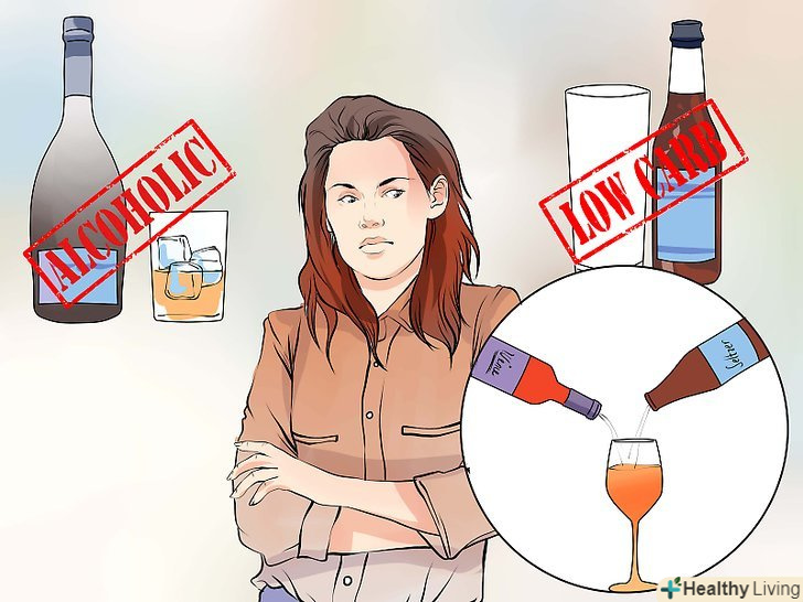 Обмежте вживання спиртного. В спиртних напоях також міститься цукор. Крім того, вони не володіють будь-якої поживною цінністю. Відмовтеся від алкоголю повністю або обмежтеся тільки «легкими» напоями з низьким вмістом вуглеводів.- У всіх спиртних напоях міститься певна кількість цукру. Це стосується не тільки солодких напоїв, таких як коктейль маргарита.