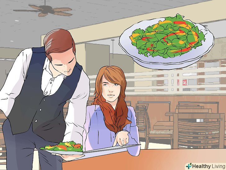 Будьте уважні при відвідуванні ресторанів.у ресторані легко з'їсти що-небудь з цукром, оскільки до страв не додається список інгредієнтів. Проте, завжди можна попросити офіціанта розповісти, з чого приготовлено ту чи іншу страву. Замовляйте страви з мінімальним вмістом цукру. Постарайтеся дотримуватися наступних правил:- Просіть заправляти салати не готової заправкою, а простим рослинним маслом і оцтом. Крім того, замовляйте заправку окремо, щоб ви могли самі додати її в салат.