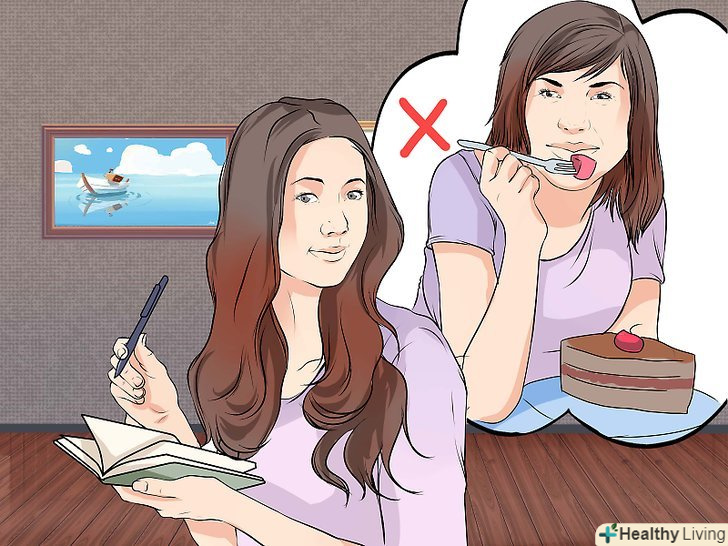 Будьте готові до промахів.свята, Дні народження та інші особливі випадки не обходяться без солодощів, і іноді буває складно утриматися. Нічого страшного, якщо ви дозволите собі слабкість. Головне, щоб після цього ви якомога швидше знову почали дотримуватися свою дієту.- Постарайтеся записувати в щоденник все, що ви з'їли, а також причини цього. У багатьох випадках порушення дієти пов'язані зі стресом та іншими емоційними факторами.