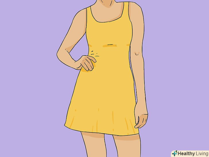 Носіть сукні, які розширюються до низу.подібні сукні сидять щільно на стегнах, але розширюються до низу до краю, створюючи ілюзію тонкої талії. Вони підходять практично під будь-яку фігуру, підкреслюючи талію і приховуючи всі недоліки в стегнах.
