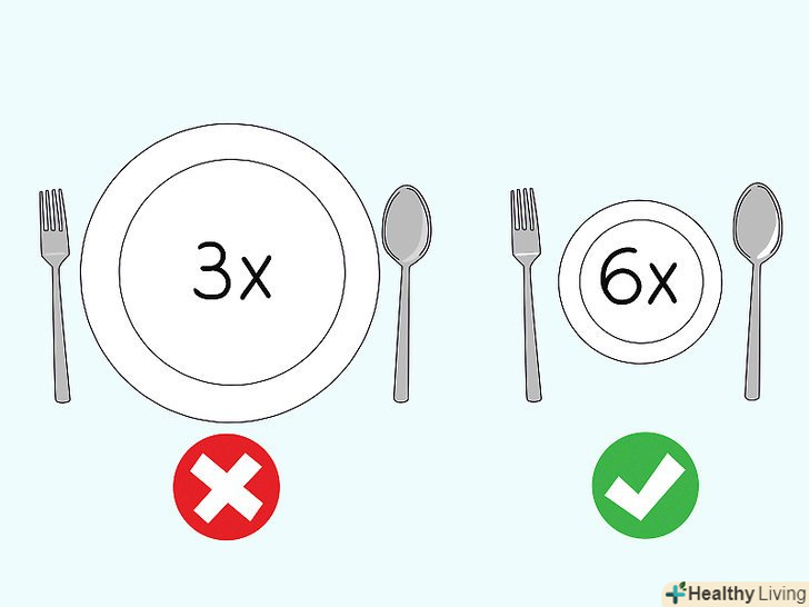 Їжте менші порції, але частіше.дуже часто люди, які сидять на дієті, морять себе голодом в проміжках між прийомами їжі, в кінцевому підсумку це призводить до того, що вони починають їсти більше ніж потрібно, коли їжа виявляється перед ними. Найголовніший секрет успішних дієт в тому, щоб їсти частіше протягом дня, але меншими порціями.- Спробуйте їсти шість разів на день потроху, ніж харчуватися в звичному режимі три рази на день. У вас легко вийде дотримуватися планів по зниженню ваги в довгостроковій перспективі, якщо, звичайно, ви не будете їсти все підряд!