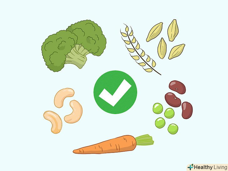Додайте в свій раціон більше клітковини.багаті клітковиною продукти-необхідний компонент для будь-якої здорової дієти в силу багатьох причин. По-перше, продукти з клітковиною покращують роботу кишечника, мінімізують здуття і запори. По-друге, такі продукти дозволяють відчувати себе насиченим протягом більшого часу, до того ж їх потрібно ретельніше пережовувати; все це дозволяє запобігти переїдання. Продукти з підвищеним вмістом клітковини зазвичай низькокалорійні, на відміну від інших типів продуктів.- Постарайтеся включити широкий спектр продуктів з високим вмістом клітковини в свою дієту, щоб скористатися перевагами як розчинних, так і нерозчинних волокон. Приклади розчинних волокон: овес і ячмінь, горох і квасоля, яблука, морква, цитрусові. Приклади нерозчинних волокон: пшеничні висівки і продукти з цільнозернового борошна, горіхи, бобові та зелені овочі.[2]