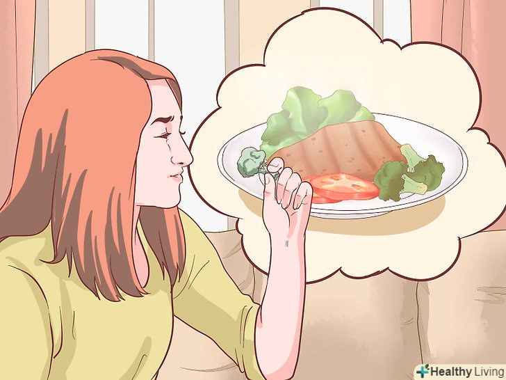 Їжте те, що Вам подобається. важко харчуватися здоровими продуктами, якщо вам не подобається те, що ви їсте. Постарайтеся включити в свій раціон здорову їжу і продукти, які вам подобаються. Так підвищується ймовірність того, що ви все-таки з'їсте те, що купили. Наприклад, замість того щоб купувати здорове блюдо з продуктів, які вам насправді не подобаються, і з'їсти лише трохи, приготуйте одне зі своїх улюблених страв, а як гарнір використовуйте щось з корисної їжі.- Якщо ваша дитина не хоче їсти певну їжу, запропонуйте йому те, що йому точно подобається. Ніколи не змушуйте дитину їсти те, що він не любить. Краще Запропонуйте інший такий же поживний продукт.[17]