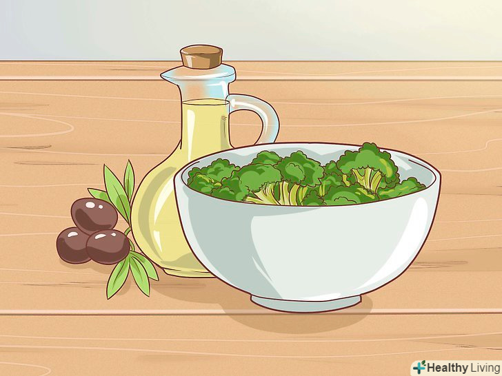 Додайте в раціон здорові жири.внесіть невеликі зміни в своє харчування. Не використовуйте в їжі знежирені або низькокалорійні продукти. Додайте здорові жири (такі як оливкова олія) до овочів та інших низькокалорійних страв. Наприклад, приготуйте брокколі на пару, а в кінці додайте трохи оливкової олії.[4]