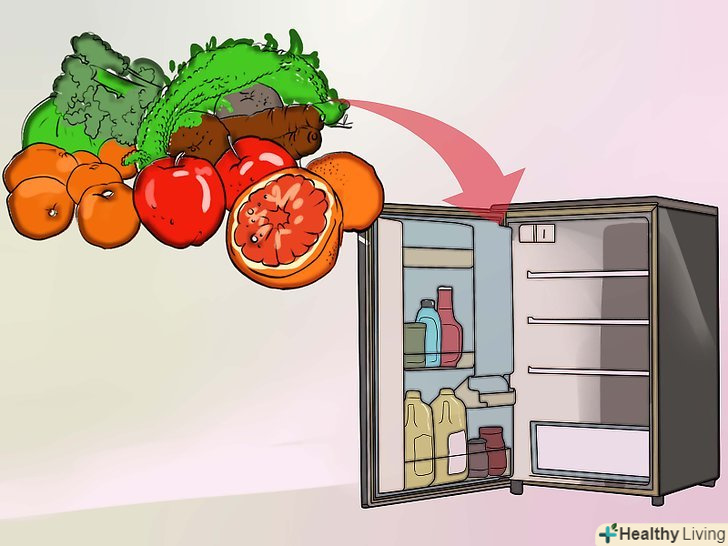 Їжте свіжі продукти.поживних речовин найбільше у фруктах і овочах, які ви тільки що зібрали. Чим більше ви чекаєте, перш ніж з'їсти їх, тим більше поживних речовин вони втрачають.[1]- Купуйте лише стільки, скільки з'їсте за кілька днів. Краще ходити за покупками частіше, щоб в холодильнику завжди були свіжі продуктів.