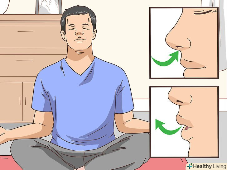 Спробуйте медитацію або техніки глибокого дихання.і медитація, і глибоке дихання можуть збільшити рівень ГАМК. Займайтеся медитацією і глибоким диханням вдома, у відокремленому місці. Для виконання глибокого дихання необхідно сісти в зручне положення, закрити очі і зробити вдих на рахунок чотири. Потім видихніть на рахунок чотири. Повторіть так кілька разів, поки не відчуєте себе спокійно.[4]- Спробуйте зайнятися медитацією і глибоким диханням в місцевому центрі медитації або студії йоги.
