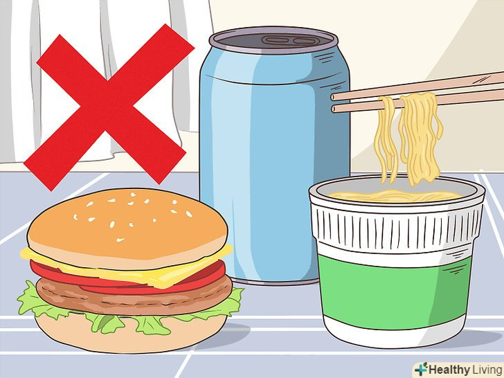 Уникайте продуктів, що містять ексайтотоксини.ексайтотоксини можуть викликати перезбудження нейронів в мозку, що, в свою чергу, призводить до посилення тривоги, безсоння, порушення уваги і стресу. Відмова від продуктів, що містять ексайтотоксини, дозволить з часом збільшити рівень ГАМК, особливо якщо разом з цим ви також внесете інші зміни в свій раціон харчування і спосіб життя.[5]- Уникайте продуктів, в яких міститься глутамат натрію (напівфабрикати і їжа швидкого приготування).