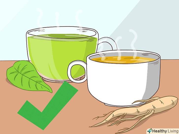 Пийте зелений чай і чай з женьшенем.зелений чай і чай з женьшенем можуть збільшити рівень ГАМК. Чай улун також виділяє аромат, що збільшує активність ГАМК в мозку.[6]- Спробуйтезаварювати зелений чай вдома. Візьміть за звичку починати свій день з чашечки зеленого чаю, чаю з женьшенем або чаю улун.