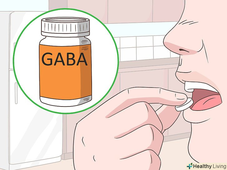 Спробуйте добавки з ГАМК.у продажу можна знайти добавки з ГАМК, які збільшують рівень цієї кислоти в мозку. Деякі лікарі стверджують, що це неможливо, оскільки ГАМК не в змозі пройти гематоенцефалічний бар'єр в організмі. Іншими словами, прийом добавок з ГАМК не допомагає цій кислоті дійти до мозку. Втім, якщо ви все одно хочете спробувати, шкоди від її прийому не буде.[7]- Якщо після прийому цієї добавки ви почнете відчувати себе більш розслабленим і спокійним, то, можливо, вона все ж діє.