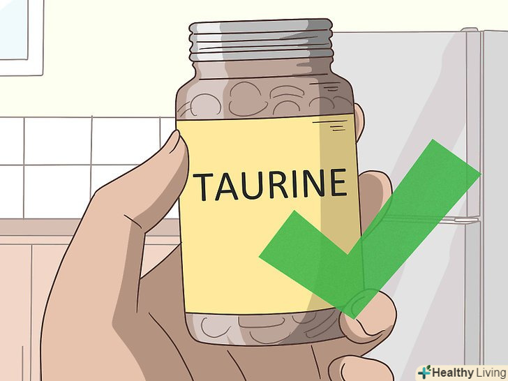 Приймайте добавки з таурином.Таурин-це амінокислота, яка у високих концентраціях присутня у нас в мозку. Вона діє подібно нейромедіаторам і може активувати рецептори ГАМК в мозку. Прийом добавок з таурином дозволить збільшити вироблення ГАМК. [8]- Добавки з таурином можна замовити онлайн або купити в місцевому магазині товарів для здоров'я або аптеці. Перед тим як почати приймати цю добавку, переконайтеся в тому, що продавець і виробник надійні і працюють офіційно.