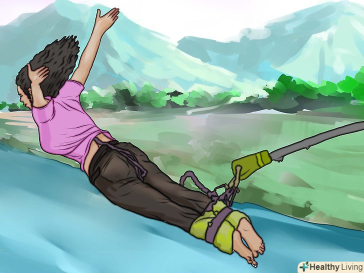 Спробуйте банджі-джампінг.багато людей розглядають екстремальні види спорту, як можливість випробувати ейфорію. Якщо ви розглядаєте екстремальні види спорту як варіант, який дозволить вам випробувати приємне сп'яніння, то вам не складно буде знайти вид спорту, який задовольнить всім вашим побажанням. Наприклад, ви могли б спробувати Скайдайвінг, рафтинг або сноубординг. Ці види спорту значно поліпшать ваше емоційне здоров'я, а також сприятливим чином позначаться на фізичному здоров'ї. [2]- Ви можете приєднатися до групи, яка любить пригоди. Чому б не знайти друзів, які марять скелелазінням або дельтапланеризмом? Заняття в групі дадуть вам можливість скоротити вартість занять екстремальними видами спорту, а також допоможуть знайти нових друзів, які поділяють ваші інтереси.