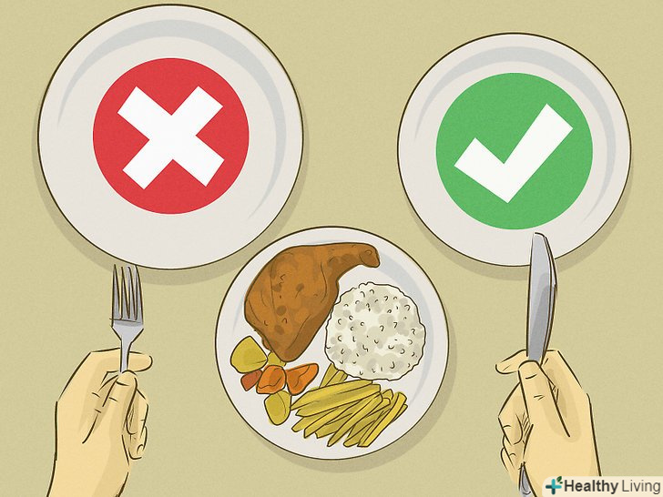 Зменшіть порції.багато людей відмовляються від нездорової їжі, але їдять надмірну кількість корисних продуктів; це теж погано. Їжте стільки, щоб відчути легке насичення.- Їжте з невеликих тарілок, щоб зменшити кількість споживаної їжі. Крім того, намагайтеся покласти на таку тарілку якомога більше овочів.
