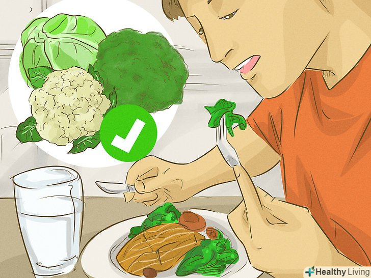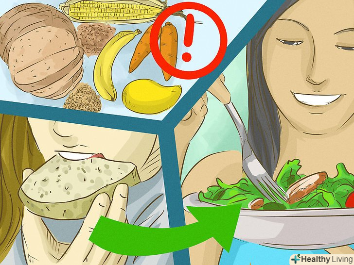Їжте продукти з низьким глікемічним індексом.такі продукти довше перетравлюються, так що Ви довше будете відчувати насичення. Ваш організм буде повільніше поглинати поживні речовини, тому ви уникнете підвищення або падіння рівня цукру в крові до наступного прийому їжі. Ось продукти з низьким глікемічним індексом: [4]- Капуста, морква, цвітна капуста, селера, огірки, кабачки, листя салату, цибуля, груші, помідори, брокколі, банани, яблука і ягоди.