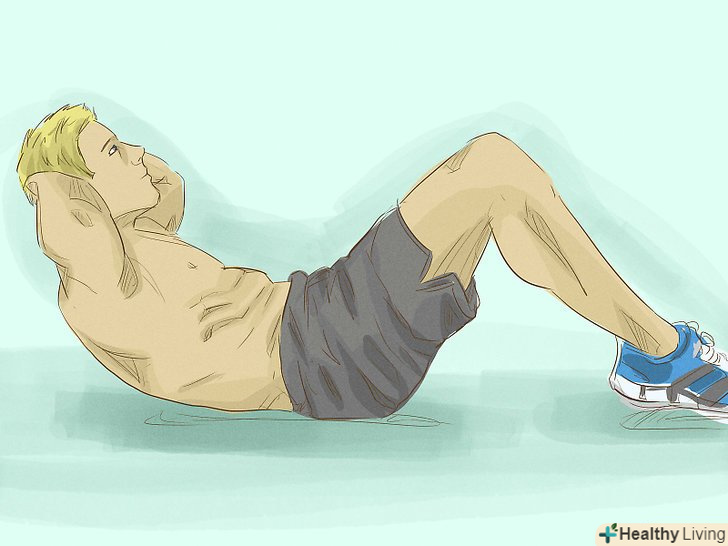 - Тримаючи ступні притиснутими до підлоги, підніміть тулуб до колін. Не тягніть голову, інакше це може привести до пошкодження шиї.