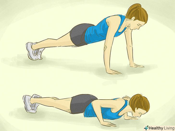 Включіть в тренування пліометрику.Пліометрика - це так звані вибухові вправи; вони поєднують кардіо і силове тренування. Найбільше такі вправи підходять для досвідчених спортсменів і спортсменів старшого віку, так як при їх виконанні існує ризик травми (падіння, удари, травми сухожиль і розтягнення зв'язок). Ось деякі чудові пліометричні вправи, які ви можете виконувати вдома:- Розніжка. Встаньте і стрибайте, розводячи ноги і руки в сторони, щоб вийшла буква «Х», а потім стрибком повертайтеся у вихідне положення. Повторіть стільки разів, скільки зможете.