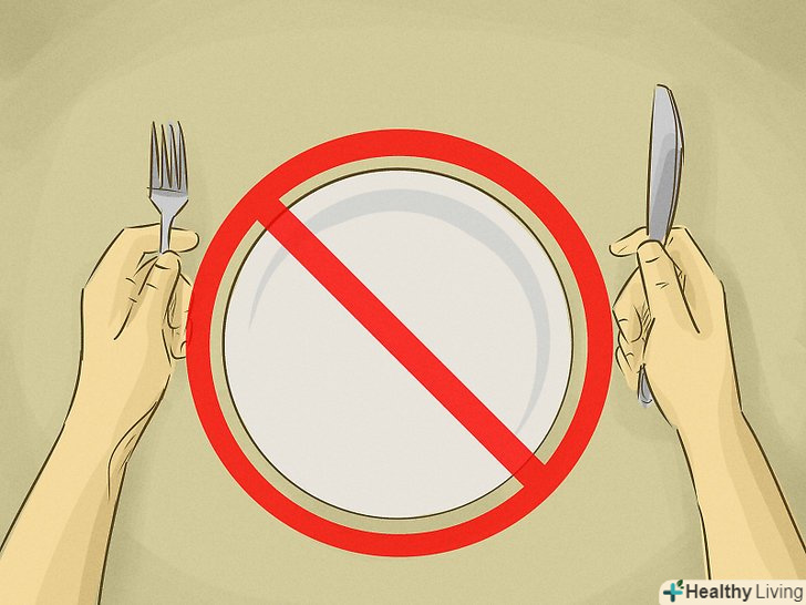 Не голодуйте.результати будуть лише тимчасовими, і незабаром ви будете розчаровані (і швидше здастеся). Коли ви голодуєте, ваш організм переходить в "режим очікування", тобто обмін речовин сповільнюється, а втрата ваги зводиться до мінімуму (або навпаки, ви наберете вагу).- Може здатися, що це найбільш ефективний метод, але, по суті, це може завдати непоправної шкоди вашому організму, а також ускладнить підтримку потрібного вам ваги.