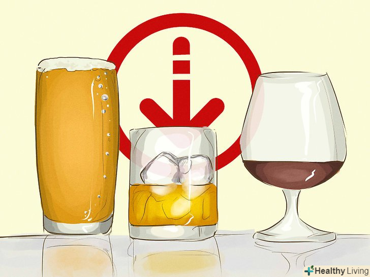 Скоротіть споживання алкоголю.ймовірно, зовсім відмовитися від спиртних напоїв буде непросто. В такому випадку хоча б зменшіть їх споживання. В алкоголі, особливо в пиві і вині багато калорій (одна пляшка вина містить близько 600 калорій).- При споживанні алкоголю збільшується виробництво естрогенів, надмірна кількість яких призводить до відкладення жирів.