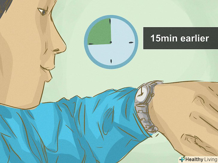 Поставте будильник на 15 хвилин раніше.якщо причина, по якій ви не снідаєте, полягає в тому, що ви поспішаєте вийти з дому, то вам потрібно перебудувати свій розпорядок. Прокидайтеся на 10-15 хвилин раніше, щоб ви могли більш спокійно почати свій день, і щоб у вас була можливість щось з'їсти.[5]- Крім того, добре відомо, що ті, у кого є звичка вставати раніше, як правило, більш здорові і щасливі. Просто не забувайте лягати раніше.