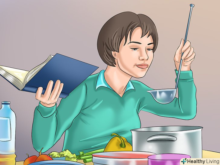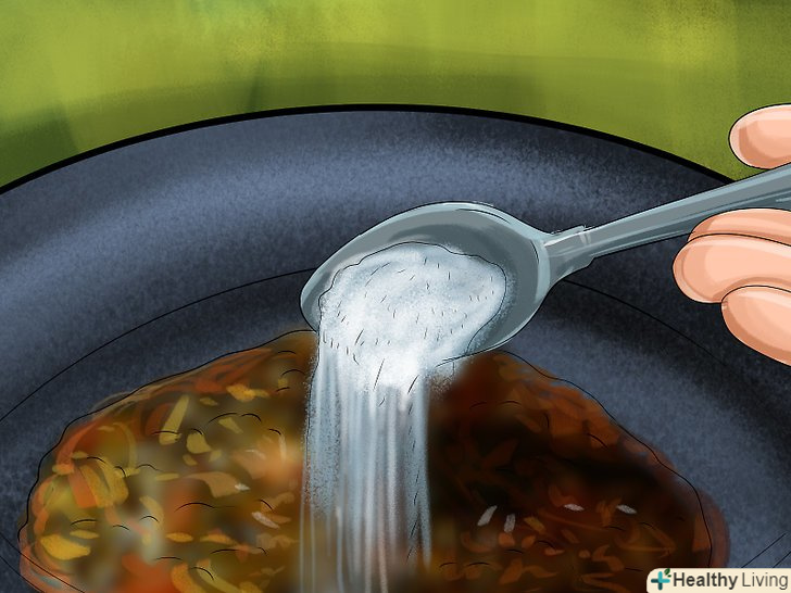 Обмежте споживання солі.швидше за все, ви це вже чули: сіль провокує здуття. І причина в тому, що чим більше солі в організмі, тим відчайдушніше він накопичує воду. Виявляється, що в чайній ложці солі міститься 2 300 мг натрію — максимально допустима кількість, яку, згідно з думкою лікарів, можна споживати за день. [6]- Надлишок натрію в раціоні шкідливий для серця і кровоносних судин (на випадок, якщо вам потрібно більше причин). Намагайтеся готувати без солі або з мінімальним її кількістю і не досолювати готові страви у себе на тарілці. Також не використовуйте суміші на зразок часникової солі або солі зі спеціями.