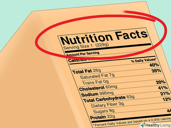 Читайте етикетки.звертайте увагу на маркування із зазначенням поживної цінності продуктів, які ви купуєте. Наведена там інформація допоможе вам зробити правильний вибір з приводу того, чим постачати свій організм. При читанні маркувань звертайте особливу увагу на кількість цукру, жирів і калорій, які там вказані. Наприклад, на них можна побачити, яка частина рекомендованої добової норми цукру там міститься.[8]- Звертайте увагу на розмір порції. Наприклад, якщо ви хочете купити пачку чіпсів, вивчіть упаковку, щоб дізнатися, чи є там інформація про загальну кількість калорій. Іноді третина упаковки вважається повною порцією.