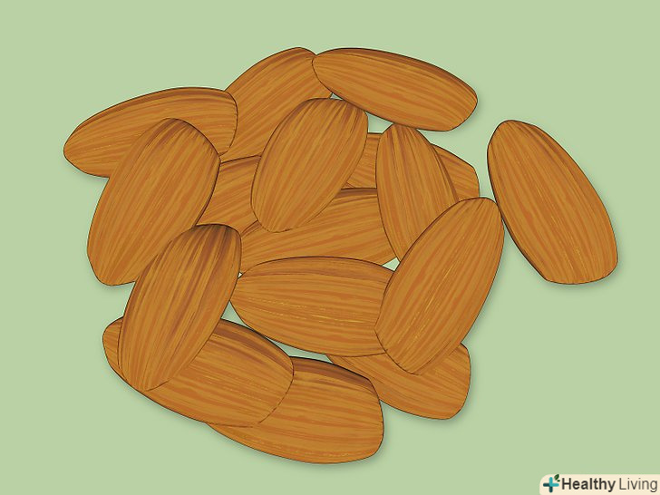 Перекушуйте мигдалем.дослідження показують, що з'їдання жмені горіхів притупляють відчуття голоду.[5] майте під рукою мішечок з горіхами, так щоб ви могли скористатися ним, коли ви відчуваєте, що перебуваєте в небезпеці і можете з'їсти цілий пиріг.- Щоб перекус був ще більш здоровим, вибирайте сирий або смажений несолоний мигдаль.