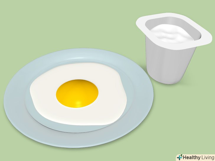На сніданок їжте прості білки.дослідження показують, що з'їдання простих білків, як наприклад, яйця або індичка, дозволить вам відчувати себе наївся до кінця дня, і зробить вас менш вразливим для почуття голоду пізніше.[3] важливо з'їсти ці продукти незабаром після пробудження. Не варто чекати середини дня, щоб мав дію анти - апетитний ефект.- Намагайтеся готувати собі корисний сніданок з яйцями або нежирним м'ясом. Йогурт-це ще один хороший продукт, що містить необхідний ранковий білок.